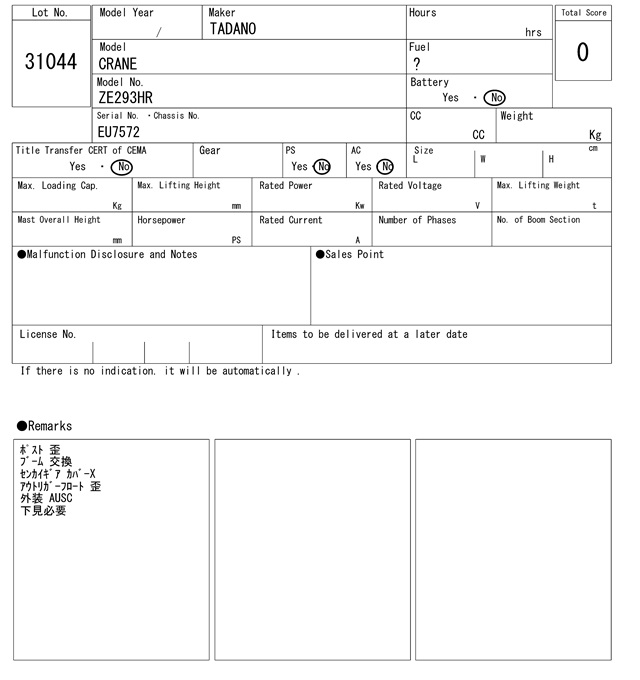 | タダノ | ZE293HR | EU7572 | 0Hrs |