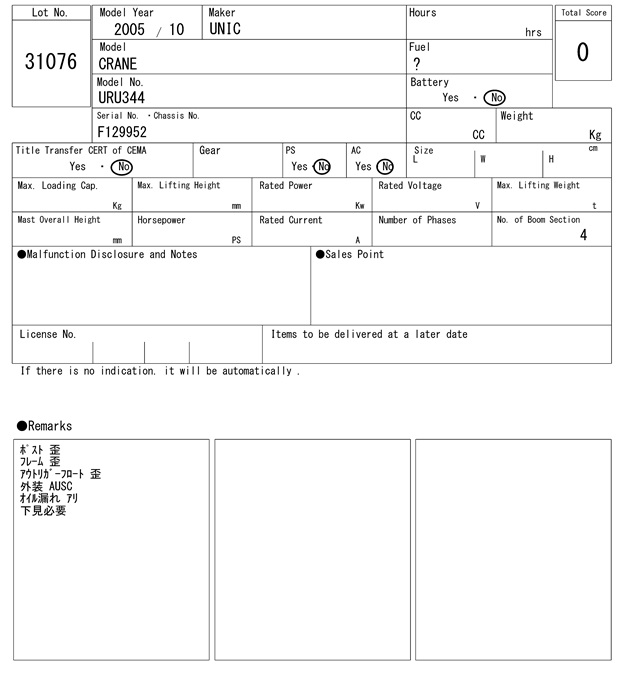 | ユニック.4ダン | URU344 | F129952 | 2005 | 0Hrs |