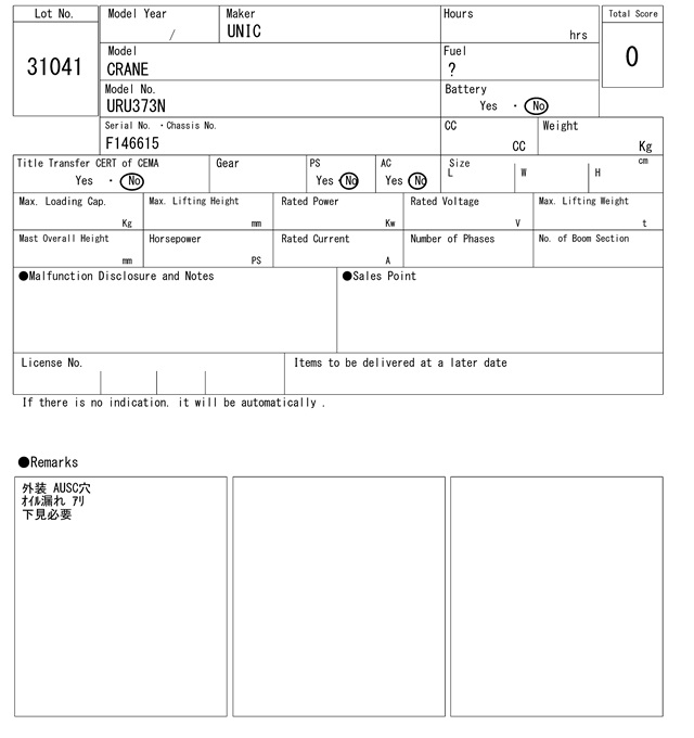 | ユニック | URU373N | F146615 | 0Hrs |
