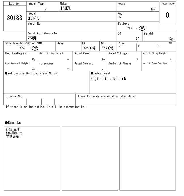 | イスズ | フメイ | 0Hrs |