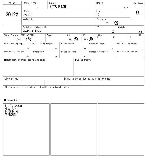 | ミツビシ | 4M42-A11322 | 0Hrs |