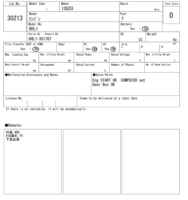 | イスズ | 6HL1 | 6HL1-351767 | 0Hrs |