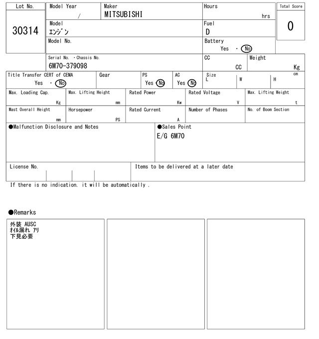 ミツビシ 6M70-379098 0Hrs
