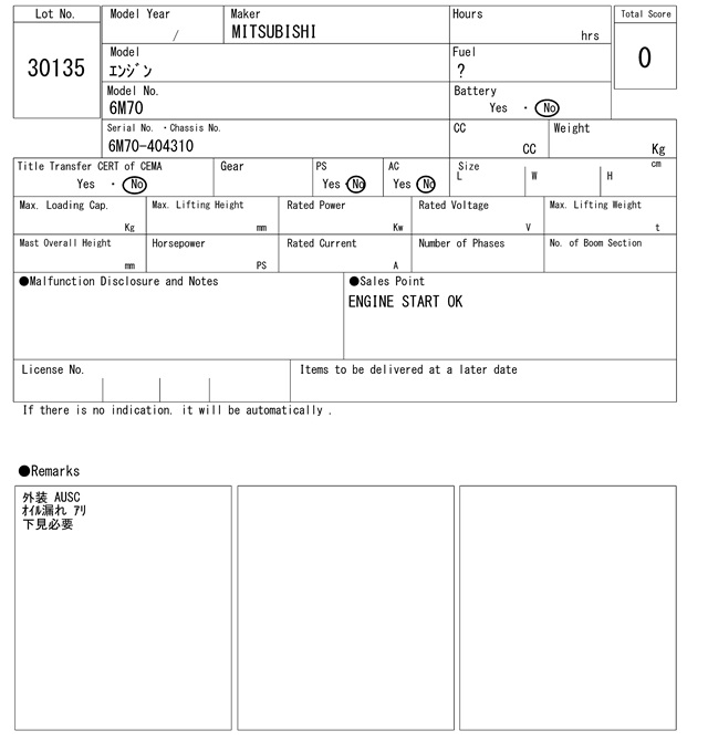 | ミツビシ | 6M70 | 6M70-404310 | 0Hrs |