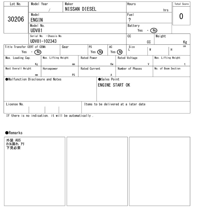 | ニッサン | UDV81 | UDV81-102343 | 0Hrs |