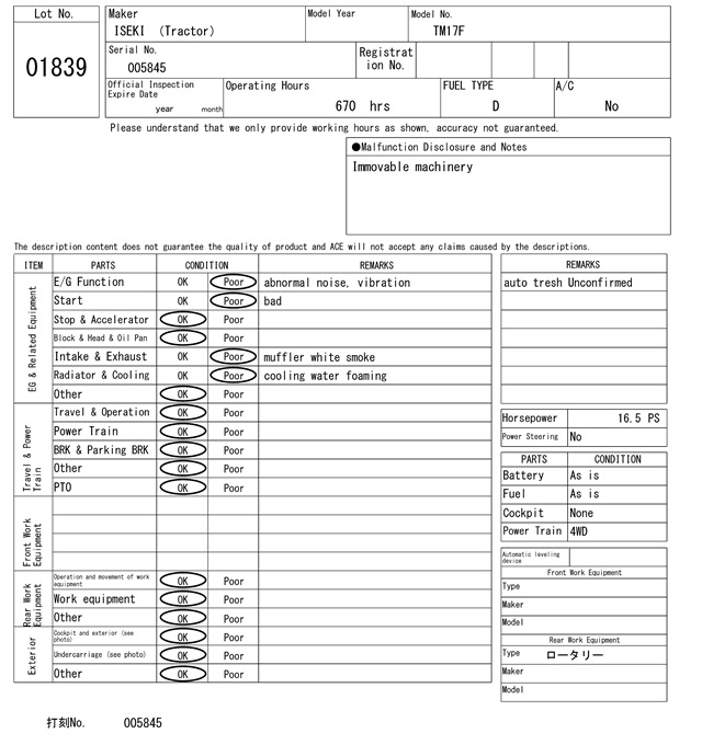 | Hãng | Model | Serial | Năm sản xuất | Thời gian hoạt động | Đặc điểm kỹ thuật |
