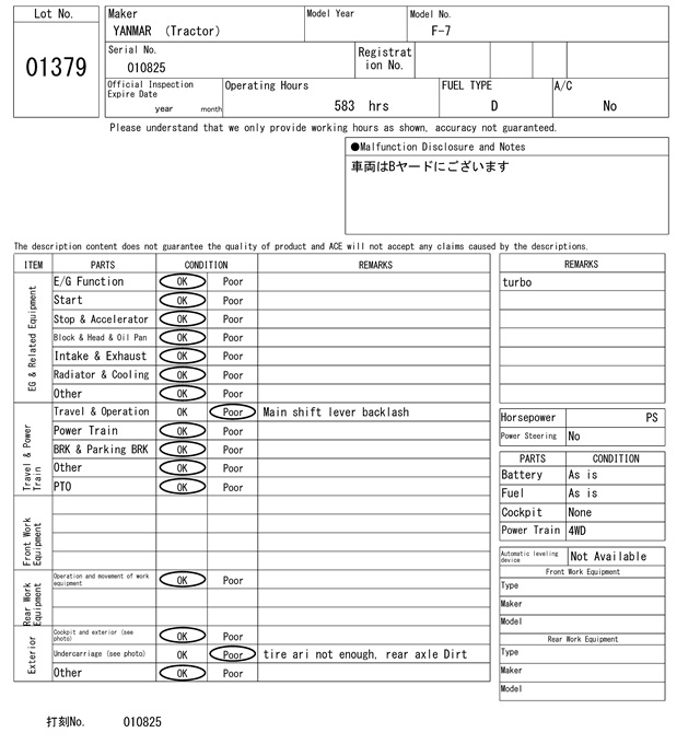 | ヤンマー | F-7 | 010825 | 583Hrs |