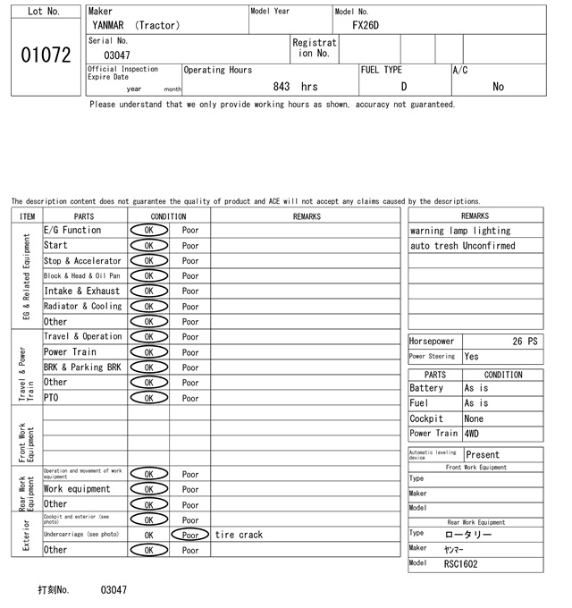 | ヤンマー | FX26D | 03047 | 843Hrs |
