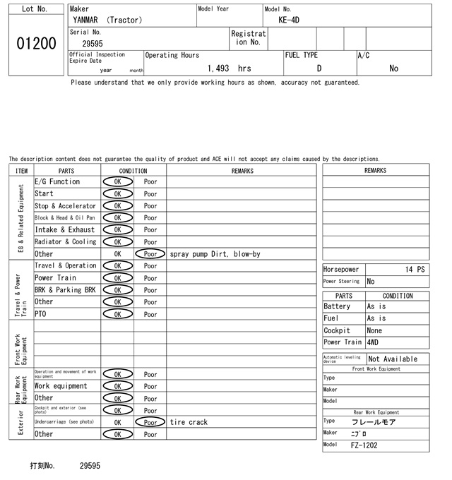 | ヤンマー | KE-4D | 29595 | 1493Hrs |