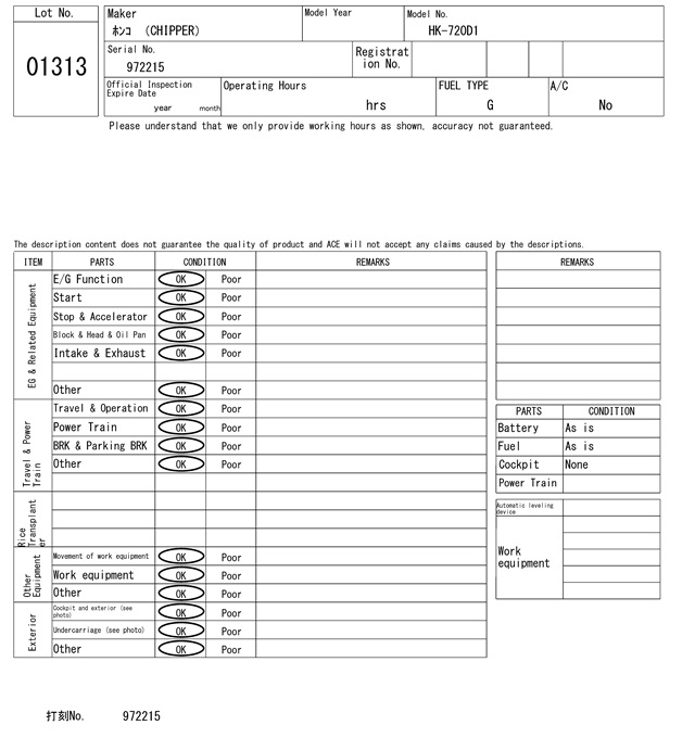 | ホンコ | HK-720D1 | 972215 | 0Hrs |