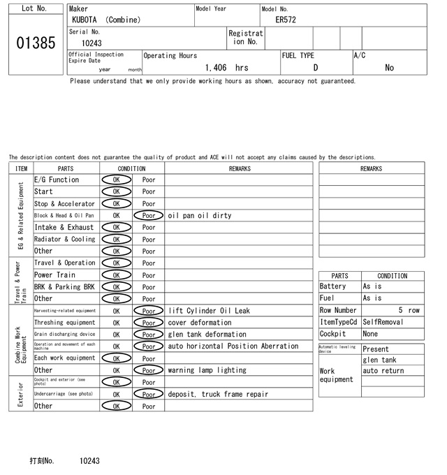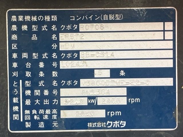 | クボタ | ER572 | 10243 | 1406Hrs |