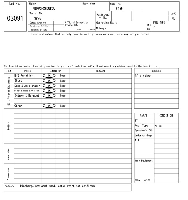 | NIPPONSHOUBOU | P455 | 3875 | 0Hrs |