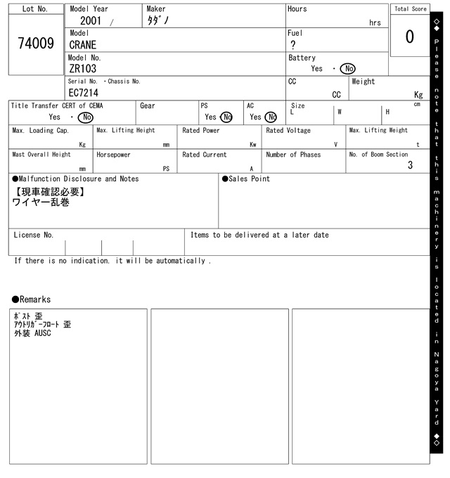 | タダノ | ZR103 | EC7214 | 2001 | 0Hrs |