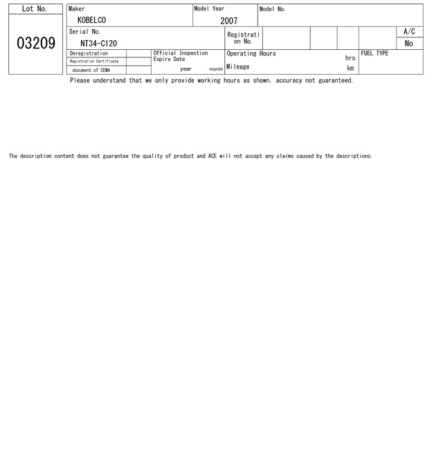 | KOBELCO | NT34-C120 | 2007 | 0Hrs |