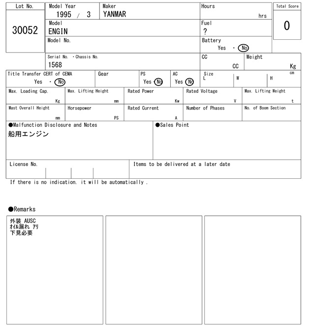 | フナヨウエンジン.ヤンマー | 1568 | 1995 | 0Hrs |