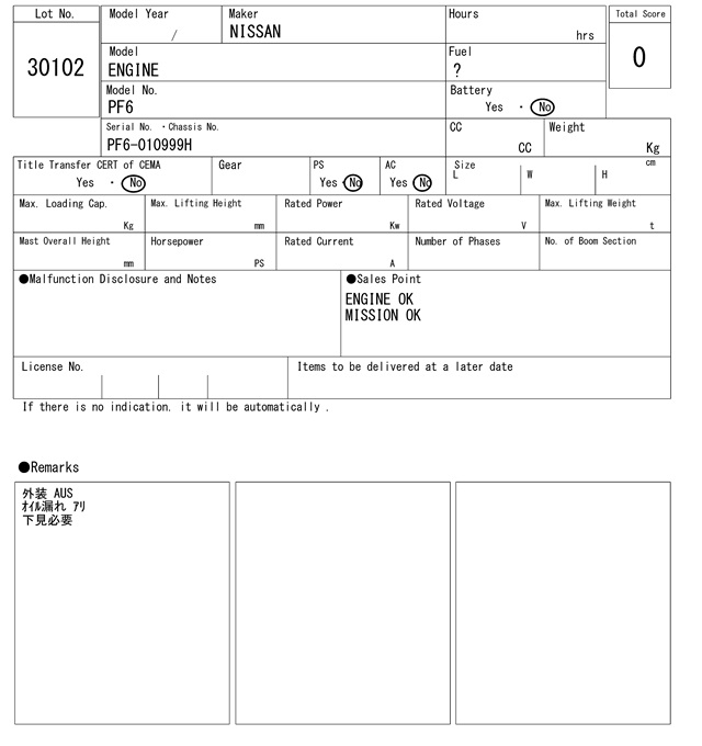 ニッサン | PF6 | PF6-010999H | 0Hrs |