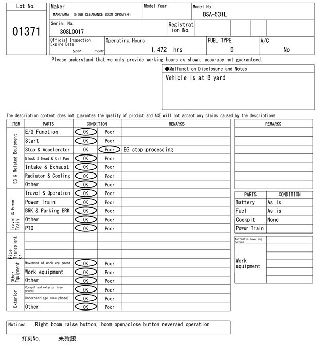 | マルヤマ | BSA-531L | 308L0017 | 1472Hrs |
