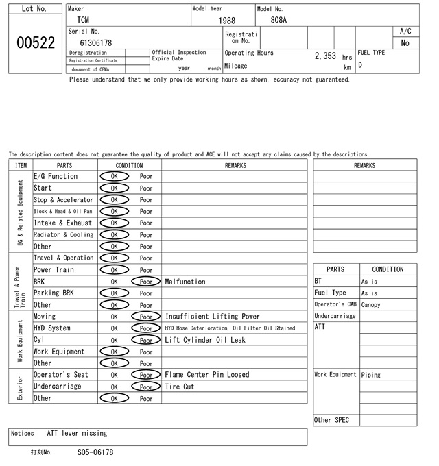 TCM 808A 61306178 1988 2353Hrs Canopy Piping