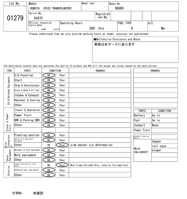 | クボタ | NSU65 | 50475 | 309Hrs |