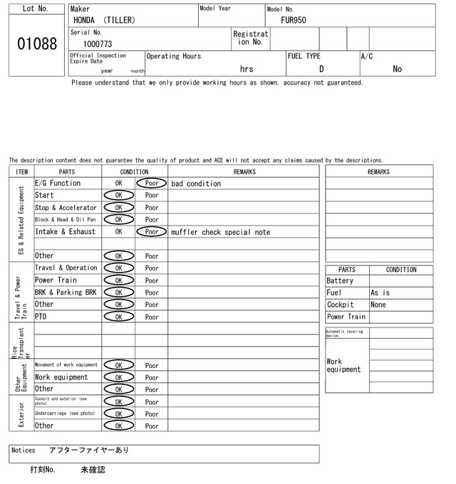 | ホンダ | FUR950 | 1000773 | 0Hrs |