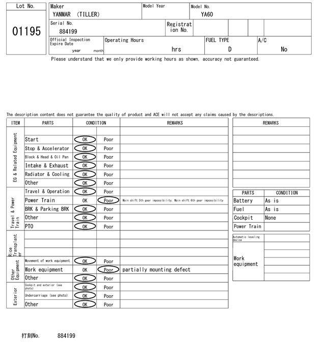 Hãng Model Serial Năm sản xuất Thời gian hoạt động Đặc điểm kỹ thuật