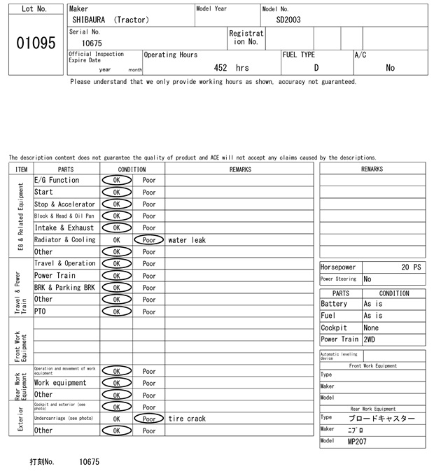 | シバウラ | SD2003 | 10675 | 452Hrs |