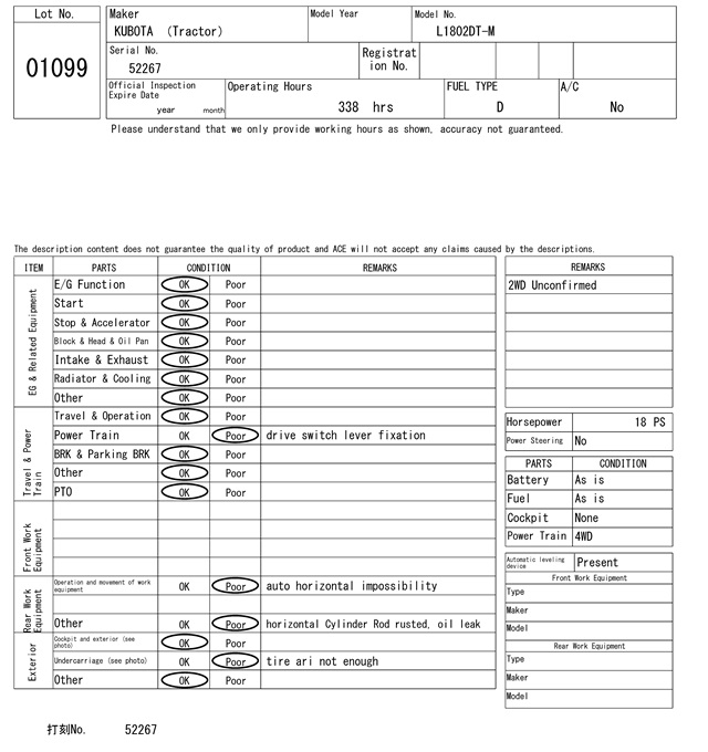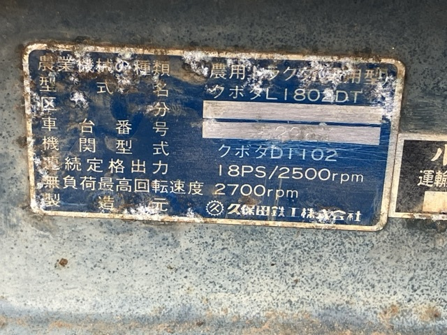 | クボタ | L1802DT-M | 52267 | 338Hrs |